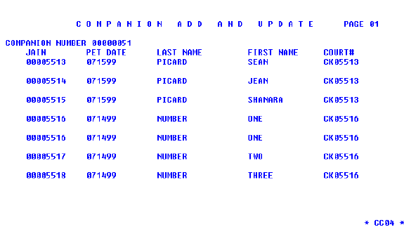 The response will be the CC04 mask. If a new group is being added no data will appear. If an existing group is being updated, previous data, including the companion number will be displayed.