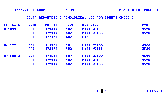 COURT REPORTER CHRONOLOGICAL LOG